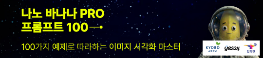<나노 바나나 PRO 프롬프트 100> 전자책이 출간 되었습니다. 책에서는 생성 이미지 AI 도구인 나노 바나나로 다양한 이미지를 생성하는데 참고할 수 있는 프롬프트 100가지와 실제 생성 사례를 담았습니다. 책은 교보문고, Yes24 등 온라인 서점에서 만나보실 수 있습니다. 자세한 내용은 아래 링크를 통해 확인하실 수 있습니다